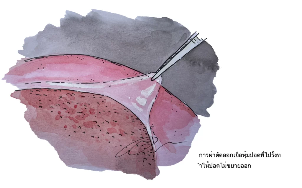 3. ลอกเยื่อหุ้มปอดออกเพื่อให้เนื้อปอดขยาย